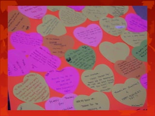 This document provides information about nominating a caring teacher for an award. It explains that the caring teacher award recognizes teachers who exemplify values like caring, sharing, and supporting students' academic and personal development. It asks students to nominate a teacher who has made a positive impact on their life, for example by showing care, influencing their behavior, or helping them believe in themselves. The document includes positive feedback from past teachers who have received nominations, with teachers feeling grateful and appreciative of learning how they have impacted students. It concludes by encouraging students to submit their own nominations online to show their teachers they care too.
