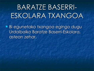 2. EGUNA BaratzeBaserri-Eskolak antolatzen dituen ekintzetan parte hartu beharko dugu. Ekintza guztiak nekazal bizimodua ezagutzeko balio izango digu. Burutuko ditugun ekintzak ikusteko klikatu hemen