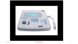 Tympanometry is an objective test used to evaluate the condition of the middle ear by measuring the impedance to sound energy flow in response to pressure changes in the external auditory canal. It focuses on two main factors: compliance (mobility of the tympanic membrane) and middle ear pressure, with normal pressure ranges identified for adults and children. Abnormal results can indicate issues such as eustachian tube blockages or ossicular fixation, and specific cases like serous otitis media can lead to reduced compliance and increased negative pressure.