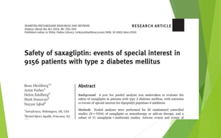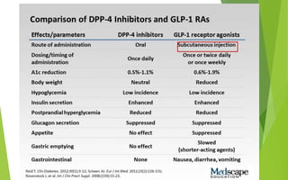This document discusses the role of glyptins (DPP-4 inhibitors) in the management of type 2 diabetes mellitus (T2DM) and chronic kidney disease (CKD). It notes that T2DM is a leading cause of CKD globally and that strict glycemic control is important for treating diabetic nephropathy. However, patients with CKD are at higher risk of hypoglycemia from antidiabetic medications. The document examines whether glyptins may be renoprotective and safer to use in CKD patients compared to other drugs due to their low risk of hypoglycemia. It reviews studies on the use of sitagliptin and other glyptins in T2