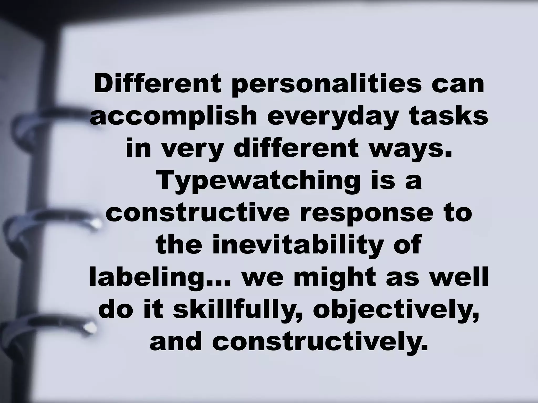 The document discusses 'typewatching,' a system for understanding personality types based on preferences like extraversion/introversion and thinking/feeling, to improve workplace relationships and effectiveness. It emphasizes that all personality types have strengths and weaknesses, encouraging individuals to be aware of their own preferences and how they vary from others to enhance collaboration and reduce misunderstandings. The document also explores the implications of different types on leadership styles, teamwork dynamics, and personal interactions in professional settings.