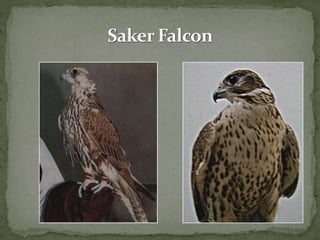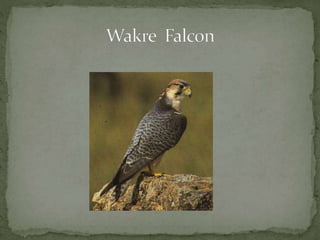 This document contains information about Abdulla Nasser Alhajre with ID H00277698. It lists four types of falcons: gyr falcon, saker falcon, peregrine falcon, and wakre falcon. It asks if there are any questions.