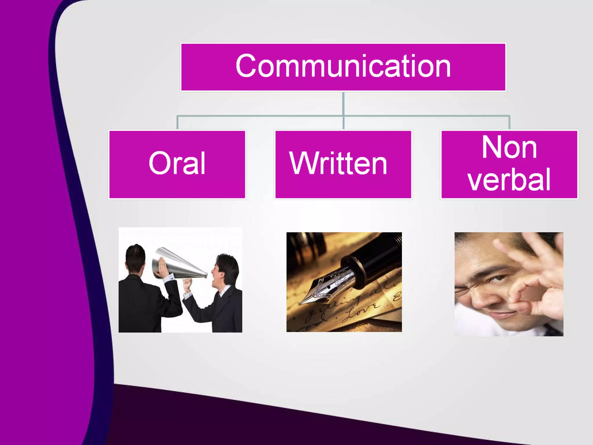 There are three main types of communication: oral, written, and non-verbal. Oral communication involves spoken words and articulation. Written communication encompasses reports, illustrations, memos, telegrams, faxes, emails, tenders, and others. Non-verbal communication conveys information through body language, signs, personal space, and body language without using words.