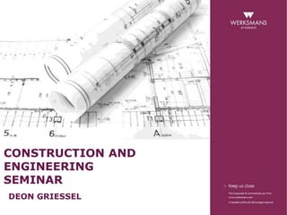 The document summarizes the key types of demand guarantees used in construction and engineering projects, including tender guarantees, performance guarantees, advance payment guarantees, retention money guarantees, warranty guarantees, and others. It provides an overview of the history and development of the Uniform Rules for Demand Guarantees (URDG), which aim to establish uniform rules for cross-border guarantees. The URDG 758 are the most recent version and establish standards for demand guarantees to make the process more efficient and reduce rejection risks for beneficiaries.