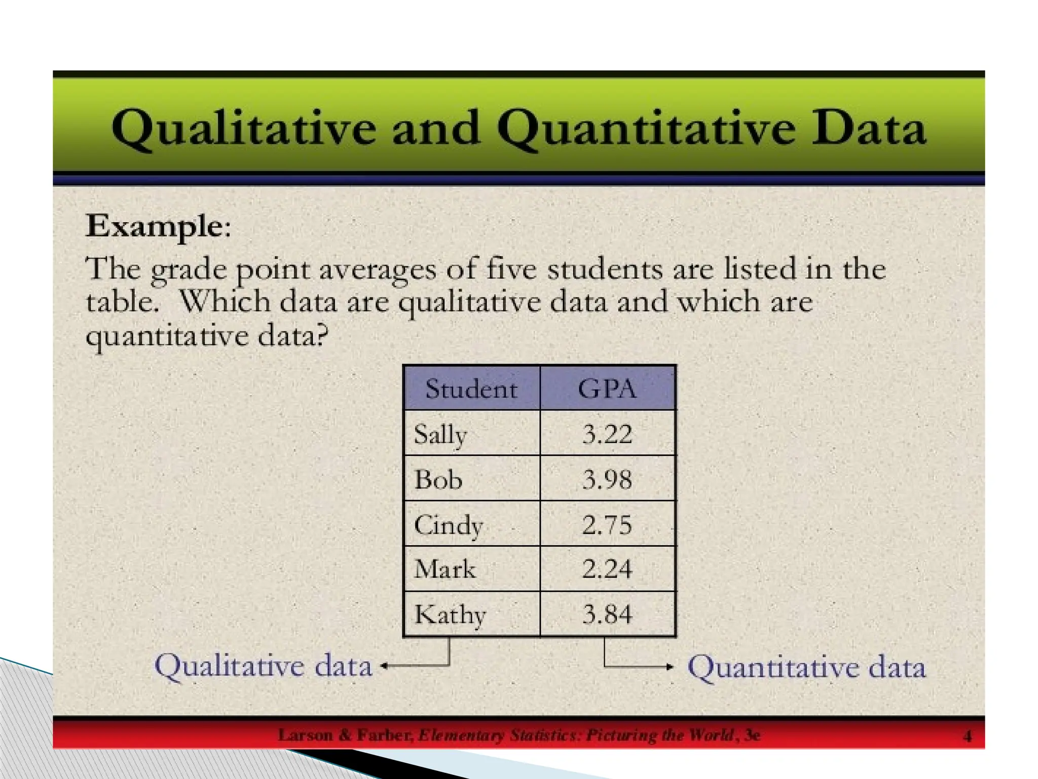 DISPLAY THE QUALITATIVE DATAAS WELLAS