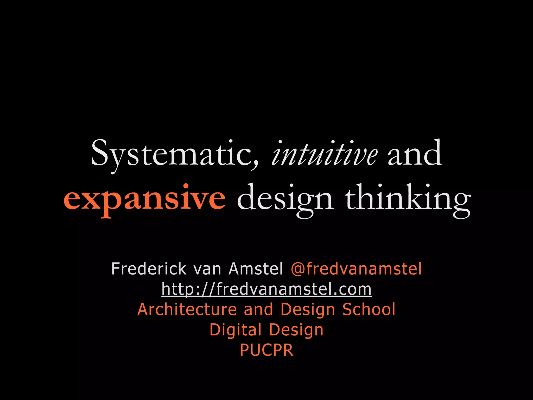 This document discusses three types of design thinking: systematic, intuitive, and expansive.