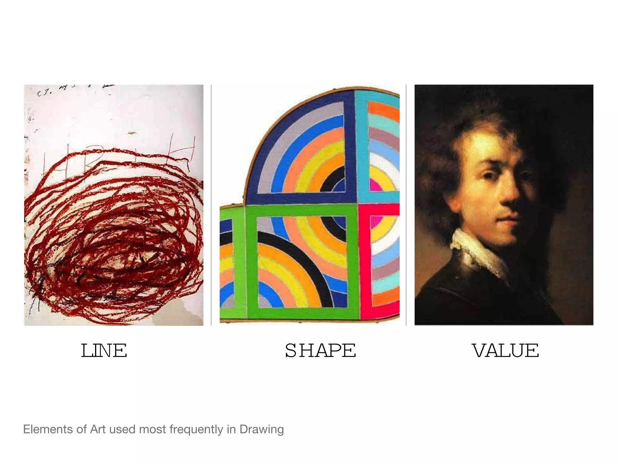 This document introduces different types of drawing techniques, including blind contour drawing where the artist only looks at the subject and not the paper, modified contour drawing where the artist looks mostly at the subject and briefly at the paper, and cross-contour lines that show the three-dimensional form of a subject across its shapes. It also discusses gesture drawings that capture movement through quick sketches, and using value, or light and dark shades, to convey form in two-dimensional drawings. Famous artists like da Vinci, Rembrandt, Picasso, and Escher employed various techniques.