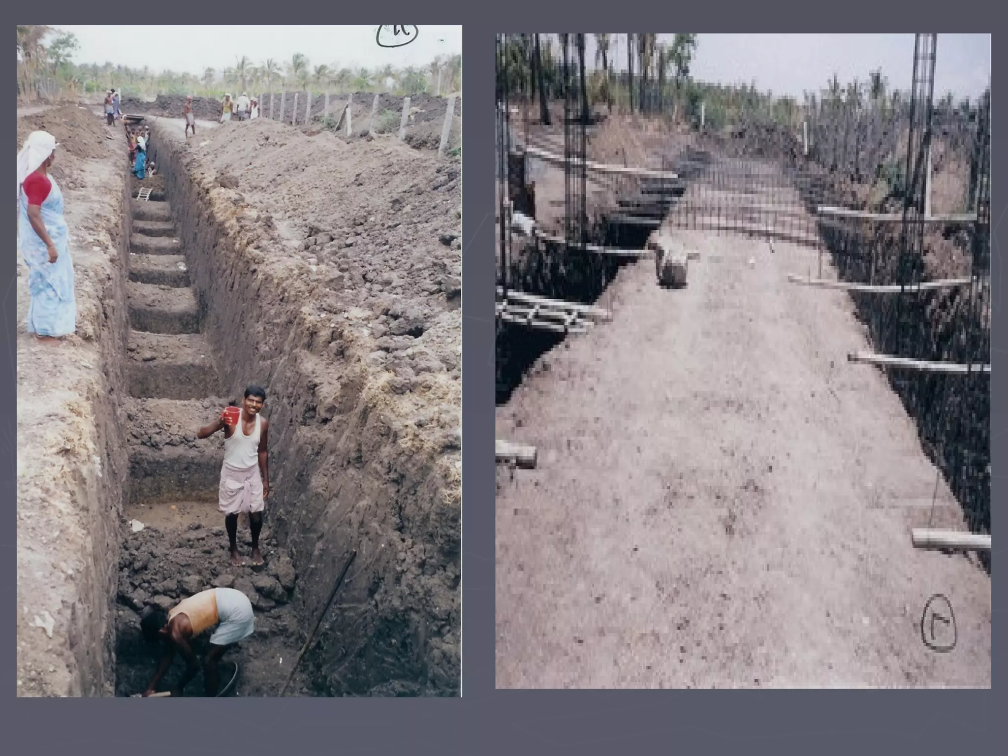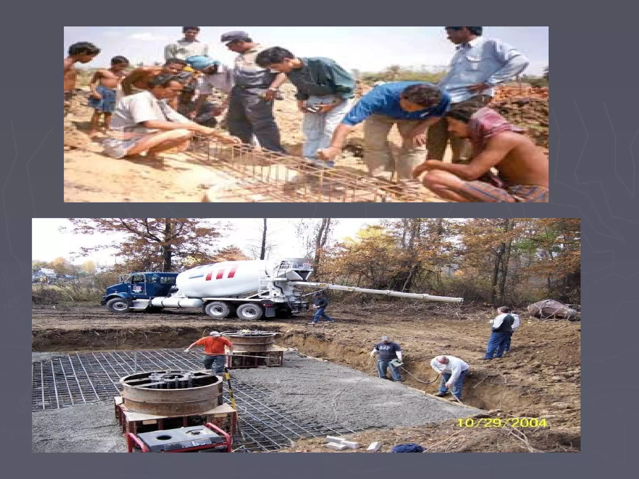 This document discusses different types of foundations used to support structures. It begins by stating the objectives are to understand foundation construction, types of foundations, and which are suitable for different soil types. It then defines foundations as the lowest part of a structure below ground that transmits the weight to the subsoil. The main types discussed are shallow foundations, which include wall, column, combined, and mat foundations, and deep foundations, such as pile, under-reamed pile, and well foundations. Specific foundation types like isolated column, combined, mat, pile, under-reamed pile and well foundations are then described in more detail.