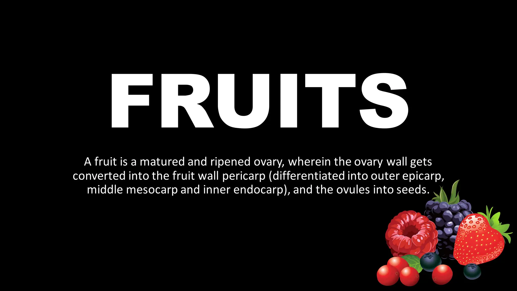A fruit is a matured and ripened ovary, wherein the ovary wall gets converted into the fruit wall pericarp (differentiated into outer epicarp, middle mesocarp and inner endocarp), and the ovules into seeds.