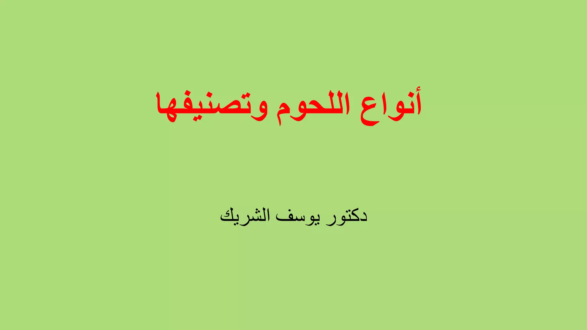 يتناول الوثيقة تعريف اللحوم وأنواعها، وبيان العناصر الغذائية الضرورية التي تحتوي عليها، مما يجعلها مادة غذائية هامة لنمو الإنسان. كما توضح كيفية تصنيف اللحوم بناءً على نوع الحيوان والعمر والجنس، مع دراسة تفاصيل عن اللحوم المنتجة من الماشية والأغنام. يتم التركيز على صفات اللحوم وتأثيرها على الاقتصاد والتسويق.
