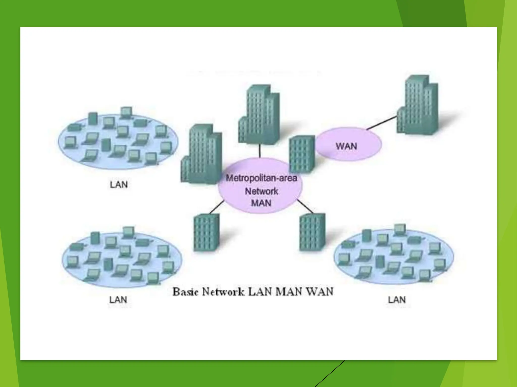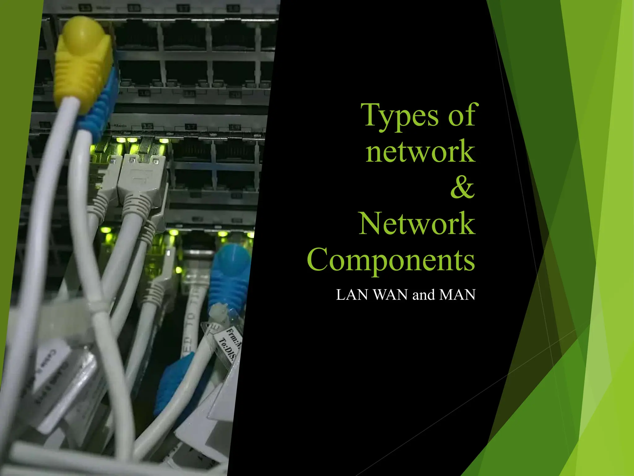 The document discusses the three main types of computer networks: LAN (Local Area Network), WAN (Wide Area Network), and MAN (Metropolitan Area Network), explaining their coverage, uses, and components. LANs are commonly used for small areas, allowing resource sharing within an office; WANs cover large distances, interconnecting multiple LANs, while MANs serve city-sized areas connecting various LANs. Key components of networks include the NIC (Network Interface Card), bridges, routers, and gateways, each serving specific functions in data transmission and network management.