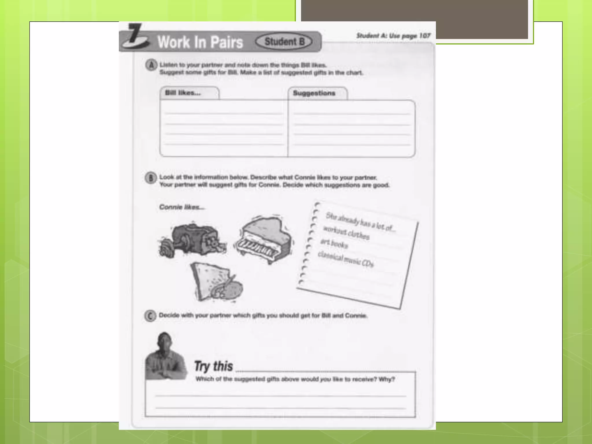 This document discusses different types of language tasks and provides examples. It describes tasks such as listing, ordering, sorting, matching, comparing, problem-solving, and sharing personal experiences. Many tasks can build upon each other and recycle similar vocabulary and language functions. Effective tasks provide clear goals and instructions to encourage richer interaction among learners. Real-life tasks are more engaging than pedagogical tasks. The document concludes with an example module on citizenship and living together that incorporates discussing opinions and supporting arguments.