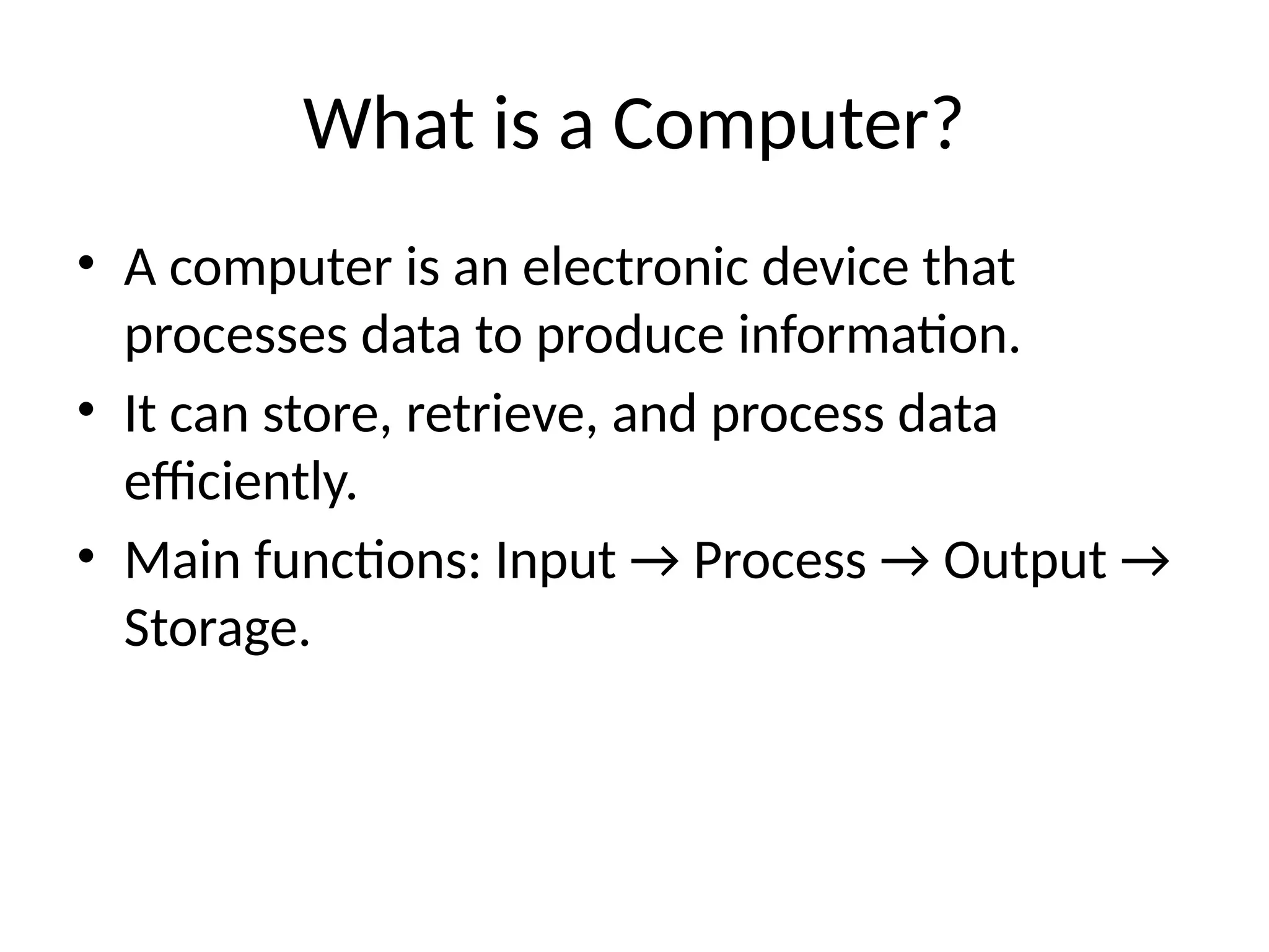 • A computer is an electronic device that