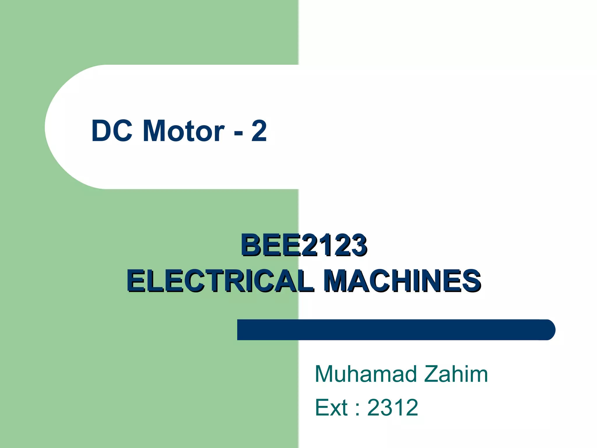 This document discusses direct current (DC) motors. It describes the construction and operating principles of different types of DC motors including series, shunt, compound and permanent magnet motors. It also discusses speed control methods for shunt and separately excited DC motors. The main methods of speed control are armature voltage control, field control and armature resistance control. Armature resistance control is simple but less efficient while field control provides better speed regulation.