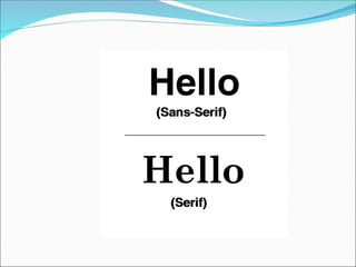 The document outlines principles of typography, covering various types of typefaces including display, body, serif, sans-serif, and specialty types. It also discusses text alignment, indentation, and important typographic elements like leading, kerning, and tracking. Additional design planning strategies emphasize the use of a limited color palette, audience consideration, and creating visual unity through margins and grid layouts.