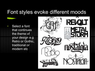 1) Font style can communicate a message and evoke different moods, while selecting the wrong font can negatively impact a design.