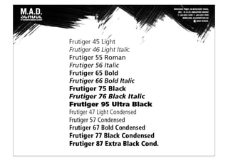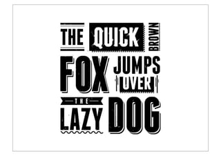 This document provides information on type anatomy, classification, and history. It begins by defining various aspects of type anatomy such as x-height, ascenders, descenders, etc. It then discusses type classification systems including distinguishing humanist, old-style, transitional, modern, and slab-serif typefaces. Sans serif classifications of grotesque, neo-grotesque, humanist, and geometric are also outlined. Finally, there is a brief overview of the history of typography and an example demonstrating the use of a panagram to evaluate typeface characteristics.