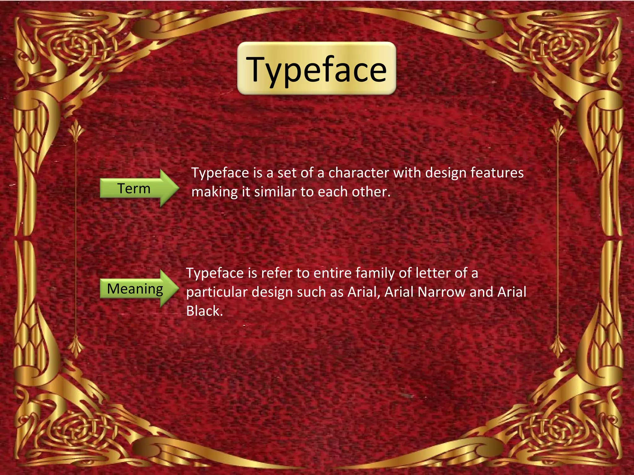 The document discusses the concept of typefaces, which are sets of characters with similar design features. It elaborates on different types of commercial fonts, including special characters and symbols used in typesetting, and the historical development and design concepts behind various typefaces. Additionally, it highlights the importance of research in architectural, sculptural, and manuscript designs when creating a typeface.