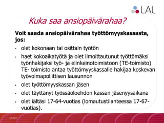 • Voinkosaada ansiosidonnaista työttömyyspäivärahaa,