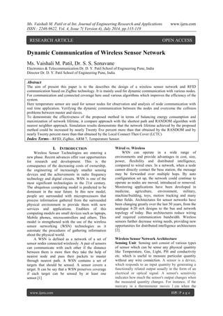 The paper discusses the design of a wireless sensor network (WSN) utilizing Zigbee technology for dynamic communication between nodes. It focuses on algorithms that improve communication efficiency and network lifetime, demonstrating that the proposed method can extend network longevity by 25% compared to existing algorithms. Key components include temperature sensors, a master-slave architecture, and cooperative communication protocols to mitigate data loss and enhance energy efficiency.