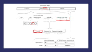 This document discusses Yubico's implementation of the U2F and FIDO2 authentication protocols. It covers key topics like key generation during registration, signature generation during authentication using an application private key, and the use of attestation certificates to verify the authenticator. Resident keys, PIN support, and extensions are also mentioned as differences between U2F and FIDO2.