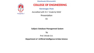 Subject: Database Managemnet System