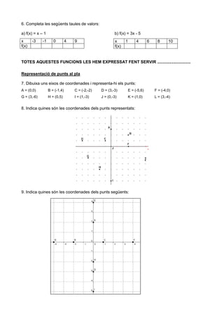 25. Fesuna taula amb cinc valors i representa gràficament les següents funcions: