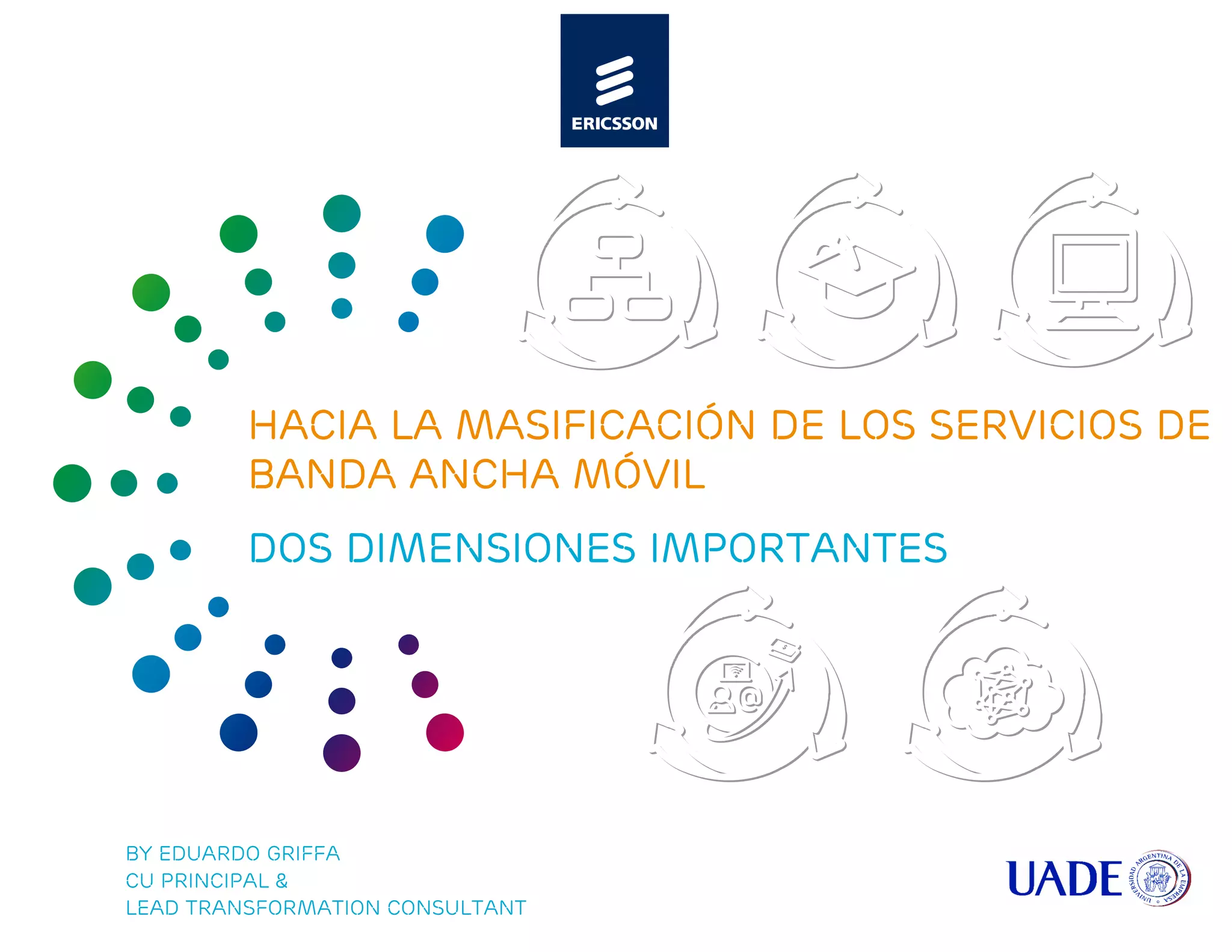 The document discusses the massification of broadband mobile services in Spain. It notes that there are two important dimensions to consider regarding the massification of broadband mobile services: (1) making services more widely available and (2) applying the broadband paradigm across society to drive innovation. The summary restates the key topic and main points in 3 sentences or less.