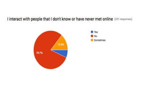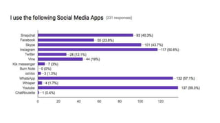 This document discusses technology use among post-millennial students and provides guidance for parents on monitoring social media use. It explains that Generation Z develops identity through social media by seeking feedback online, which impacts self-esteem. Popular apps like Snapchat, Whisper, and Vine can expose kids to inappropriate content and location sharing if not monitored. The document recommends parents have open conversations about kind and appropriate online behavior, set clear rules and limits, and celebrate positive uses of social media. Guidelines are provided on effective but not excessive parental monitoring and restricting screen time to balance technology and family relationships.