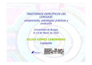El documento trata sobre los trastornos específicos del lenguaje. Estos trastornos implican problemas en la comprensión y expresión del lenguaje hablado o escrito que no se deben a factores como daño cerebral u otras condiciones. El documento discute los criterios para diagnosticar estos trastornos, incluyendo discrepancias cronológicas y cognitivas, y describe posibles déficits cognitivos subyacentes como problemas de percepción, atención, memoria y funciones ejecutivas.