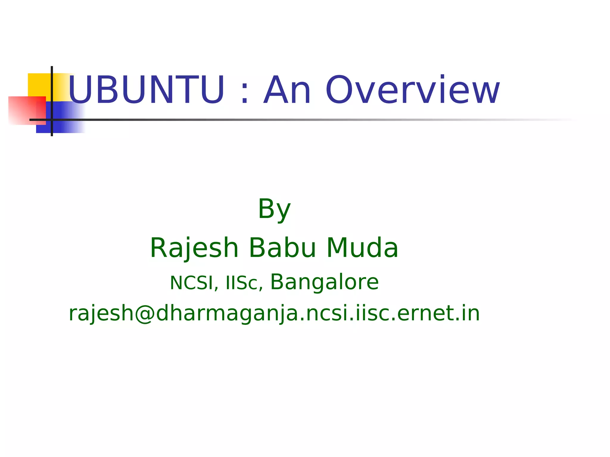 The document provides an overview of Ubuntu, an open-source operating system based on Linux. It discusses Ubuntu's history and philosophy of being freely available. It describes various Ubuntu flavors like Kubuntu and Xubuntu that use different desktop environments. It also outlines Ubuntu's file system structure, ways to install applications, basics of using the terminal, and considerations for partitioning disks during Ubuntu installation.