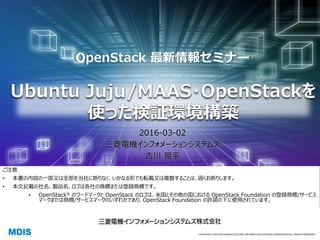 - 事例2:Juju /MAASを使ったOpenStack環境の構築と運用例