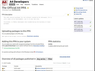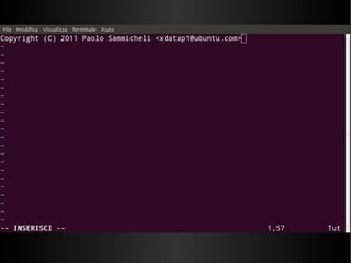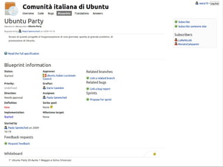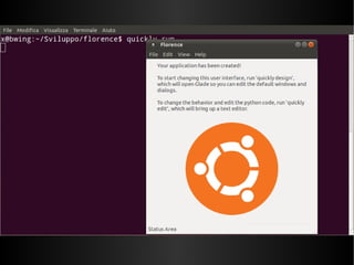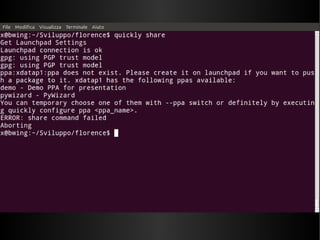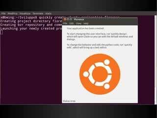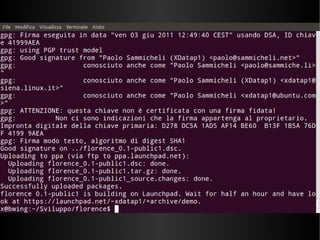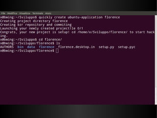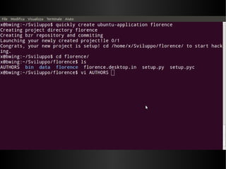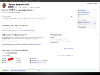 The document discusses opportunistic programming within the context of Ubuntu, with emphasis on project creation, code hosting, and additional development resources. It highlights various types of applications, including games developed using Ubuntu. Contact information for the author, Paolo Sammicheli, is also provided for further inquiries.