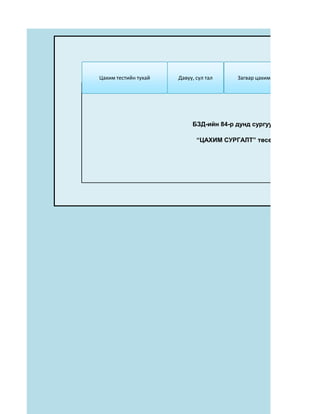 11. 12. 13. 15. 17. ЦАХИМ ТЕСТИЙН ҮНЭЛГЭЭ