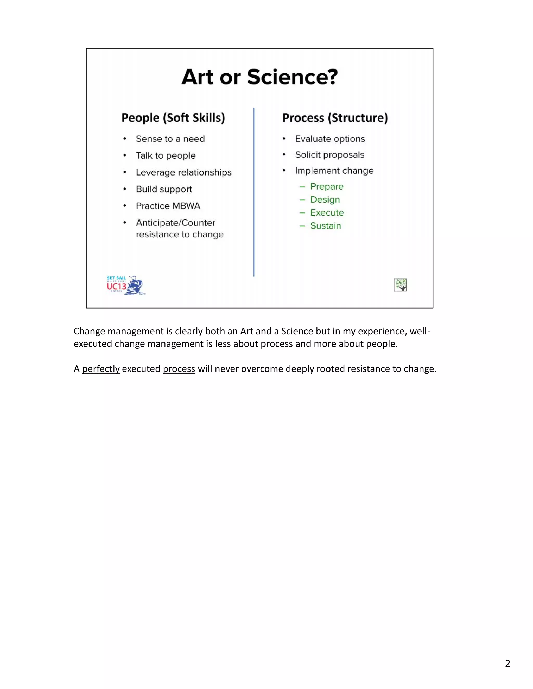 The document discusses the complex nature of change management, emphasizing the importance of addressing the human side of change and recognizing resistance rooted in human psychology. It highlights the unique challenges faced by independent schools, such as the resistance of teachers to change and the necessity for effective leadership and communication to successfully implement change initiatives. Strategies for overcoming resistance, fostering a culture of innovation, and the significance of clear vision and shared values within educational institutions are also outlined.