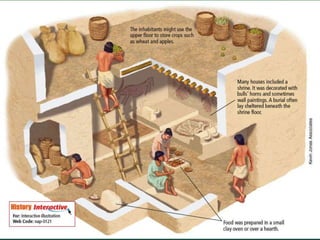 - Permanent settlements as opposed to nomadic lifestyles. Living in one place allows for more complex social organization and specialization of labor.