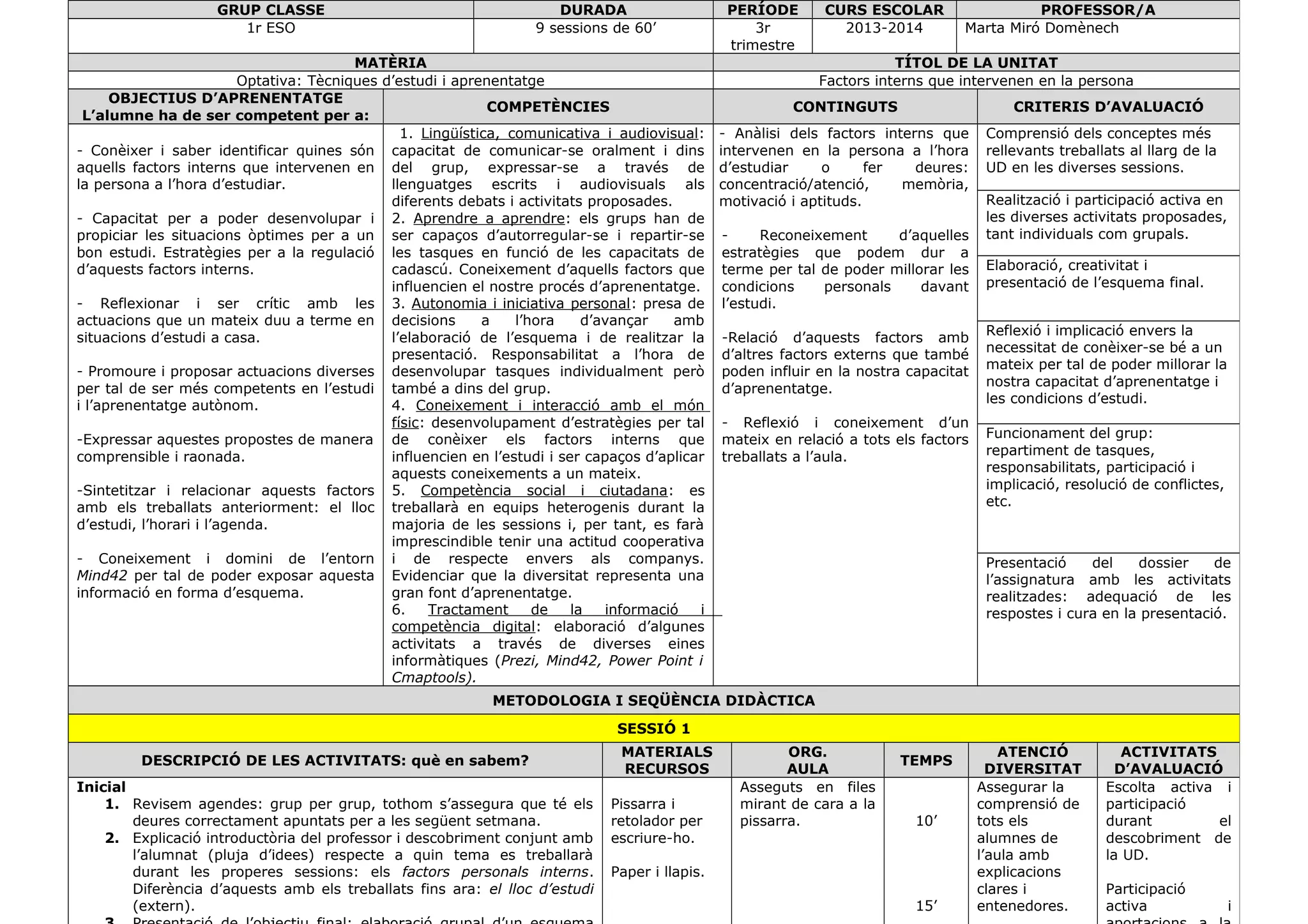 METODOLOGIA I SEQÜÈNCIA DIDÀCTICA