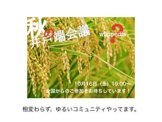 10月16日(金)19:00∼ 全国からのご参加をお待ちしています! 相変わらず、ゆるいコミュニティやってます。