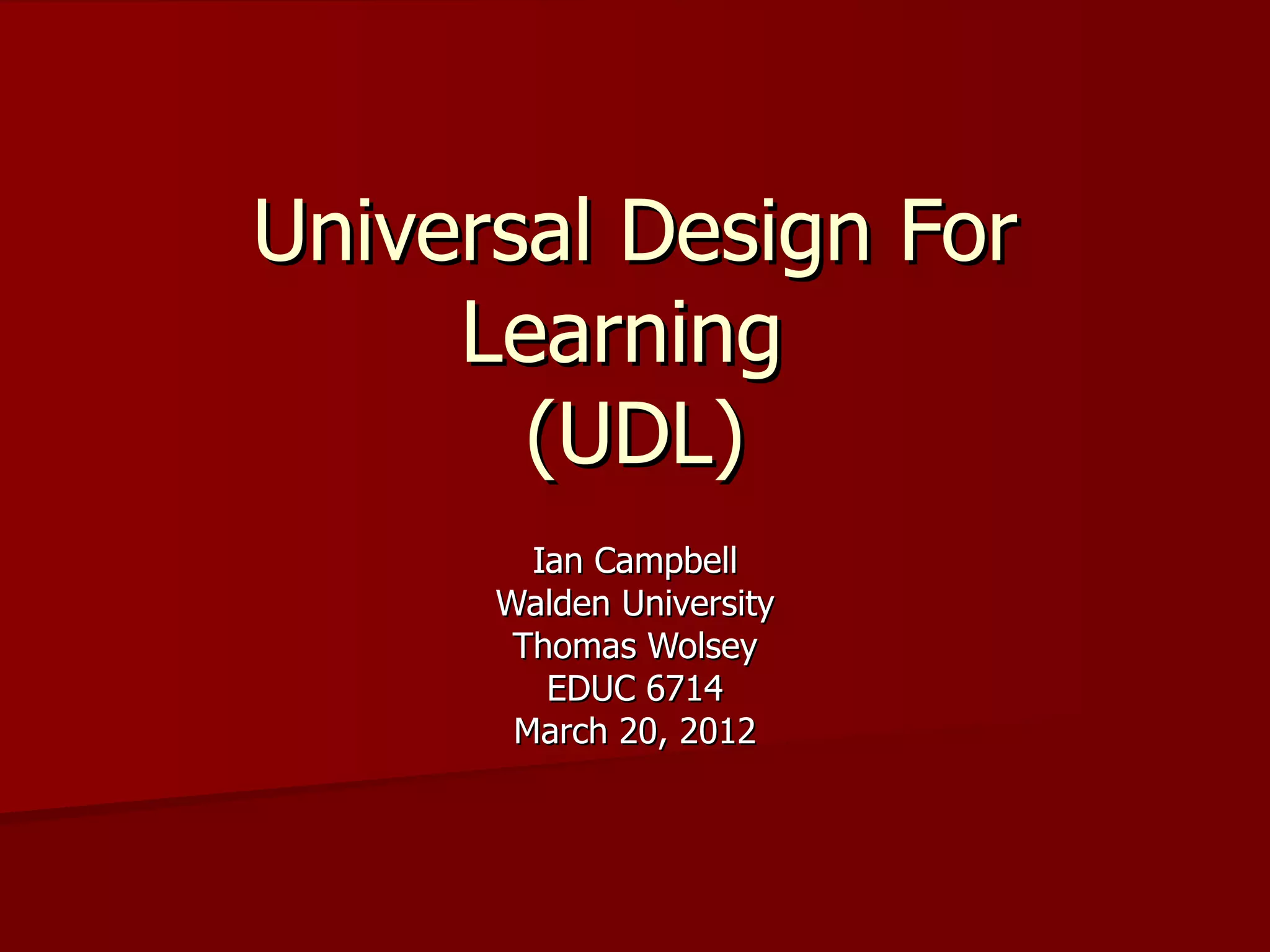 This document discusses Universal Design for Learning (UDL), a framework for instruction based on scientific findings about how people learn. UDL aims to reduce barriers and provide flexibility in how information is presented, how students demonstrate knowledge, and how students are engaged. It is based on research showing there are three networks in the brain related to learning. UDL principles call for presenting information in multiple ways, allowing for flexible methods of expression, and providing multiple ways to engage learners. Technology supports UDL by enabling flexible presentation, expression, and engagement. The document provides examples of UDL and resources from the Center for Applied Special Technology. It concludes by discussing how UDL could impact a school district by reducing achievement gaps and improving outcomes for all