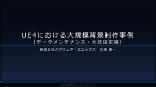 本スライドは2019年3月15日に行われた「UE4を用いた大規模開発事例紹介 ~スクウェア・エニックス様をお招きして~」にてスクウェア・エニックス様に講演していただいたものです。
