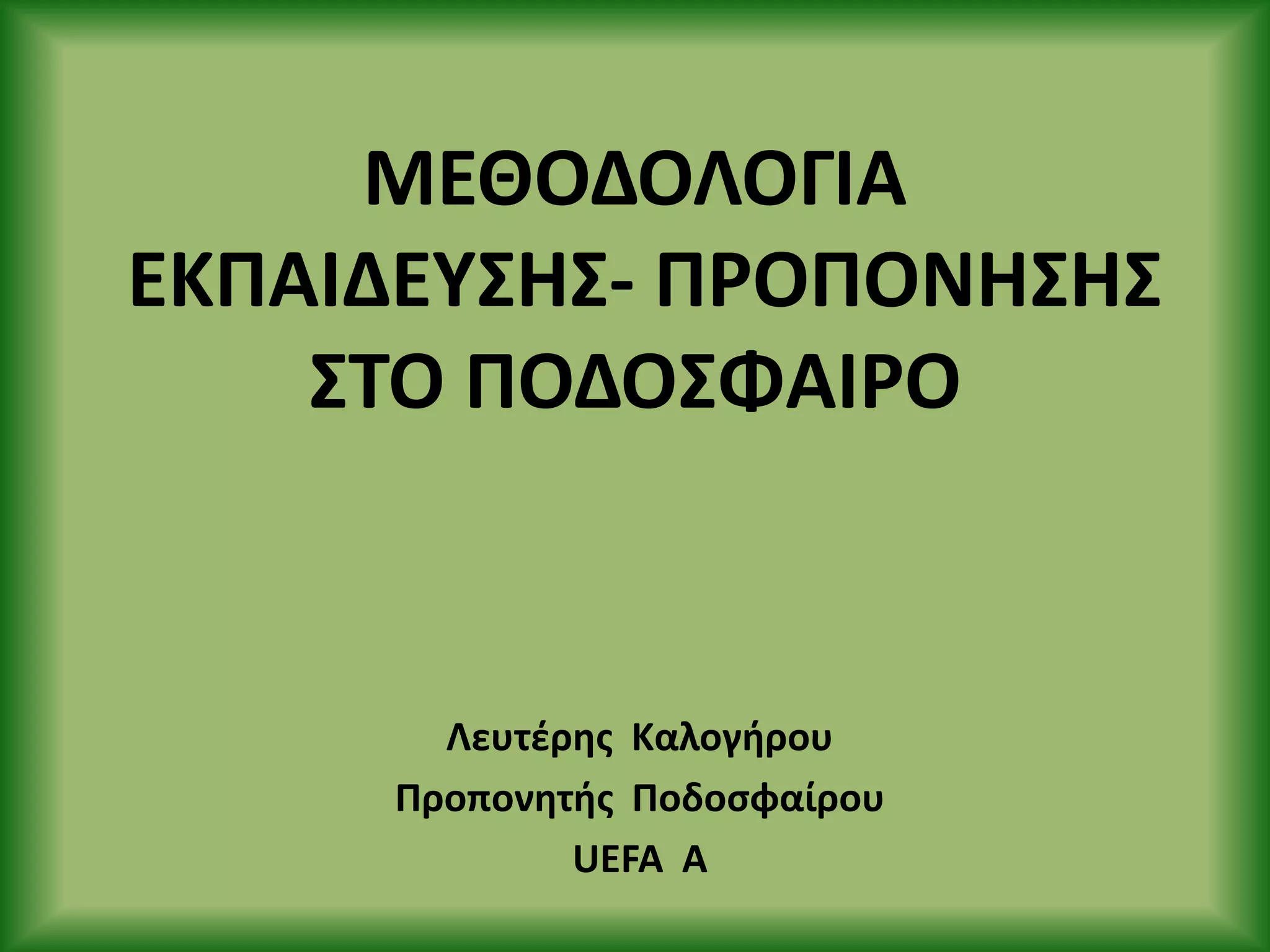 •Ο οδθγόσ πρακτικισ εξάςκθςθσ ποδοςφαίρου δεν είναι μια