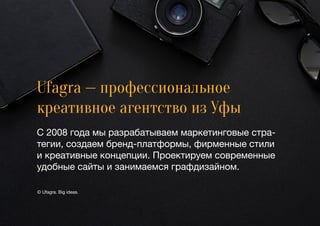 Агентство ufagra, основанное в 2008 году, предоставляет услуги по разработке маркетинговых стратегий, брендирования и веб-дизайна, зарекомендовав себя среди более 60 клиентов и завершив более 200 проектов. Команда составлена из экспертов в области маркетинга, графического дизайна и визуальных коммуникаций с многолетним опытом работы в международных компаниях. Агентство подчеркивает свою уникальную технологическую цепочку и ориентированность на результат, предоставляя своим клиентам прозрачные коммуникации и надежное сотрудничество.