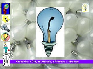 The document explores the significance of creativity and innovation, highlighting its neglect in psychology and the need for discovering and fostering creative potential in individuals. It discusses various methods for measuring creativity, the characteristics of creative thinkers, and practical strategies for organizations to support creative processes. Additionally, it emphasizes the importance of warm-up exercises to enhance creative thinking and outlines tools and techniques for generating innovative ideas.