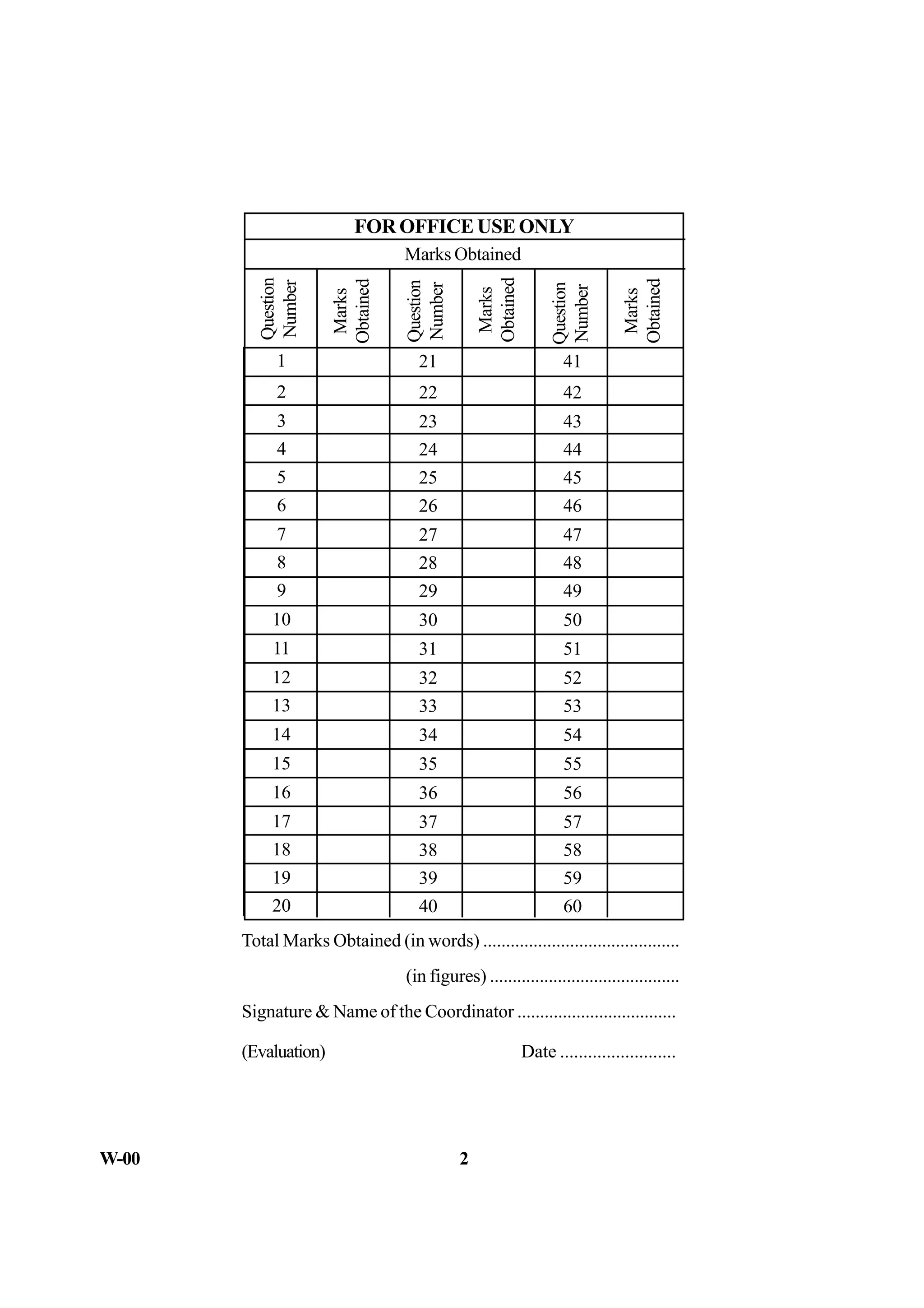 2. It outlines procedures for verifying the question booklet before the exam starts and marking responses on the answer sheet.