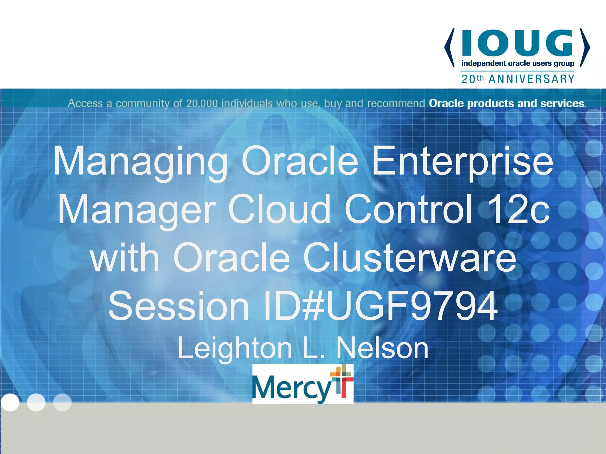 This document provides an overview of managing Oracle Enterprise Manager Cloud Control 12c with high availability using Oracle Clusterware. It discusses the different levels of high availability for OEM and focuses on level 2 active/passive configuration using a virtual IP address. It covers setting up Oracle Clusterware, installing OEM on shared storage, and configuring the failover and management repository.