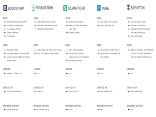 The document discusses various front-end frameworks for responsive web design. It provides an overview of popular frameworks like Bootstrap, Foundation, Semantic-UI, Pure, Skeleton, Materialize, Material UI, UI Kit, Milligram and Susy. For each framework, it lists key pros and cons, current version, date created, supported browsers and other details. The document encourages readers to learn more about front-end frameworks from blogs and free online resources on the given website.
