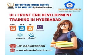 Elearn Infotech in Hyderabad offers specialized UI development training designed to enhance participants' skills in user interface design and development. The program includes instruction on HTML5, CSS3, JavaScript, and popular frameworks, emphasizing hands-on experience through practical projects. Participants benefit from expert-led training, a collaborative learning environment, and access to state-of-the-art facilities to boost their career prospects.