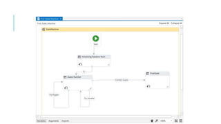 Robotic Process Automation (RPA) utilizes software robots to automate business tasks typically performed by humans, improving efficiency and customer experience. UiPath's product suite includes tools like UiPath Studio for building automation, UiPath Robot for executing tasks, and UiPath Orchestrator for managing robots and workflows. Key features include various workflow types (sequences, flowcharts, state machines) and automation capabilities that support a wide range of applications and data manipulation tasks.