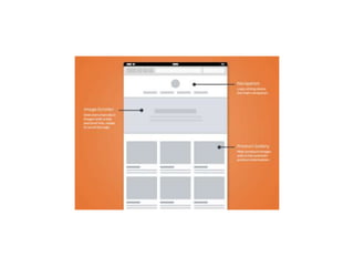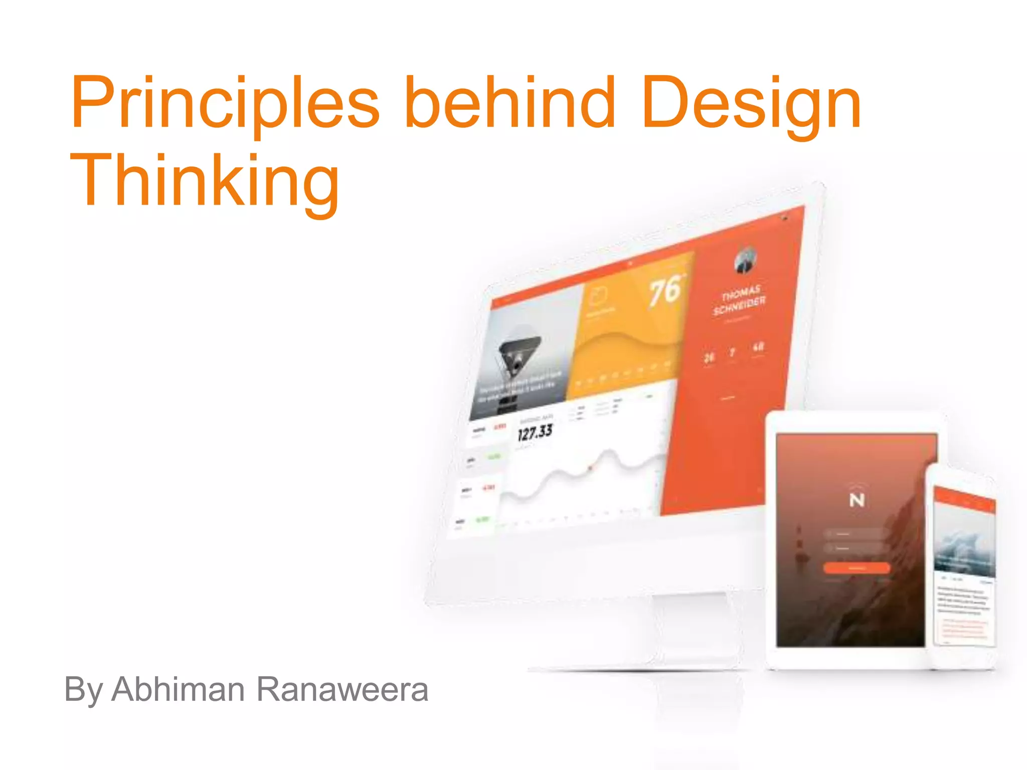 The document outlines key principles of design thinking, focusing on design patterns, layout strategies, color and font rules, and the importance of photography. It emphasizes modular and responsive design, alignment, and the two-color rule for aesthetics. Additionally, it provides guidelines on using photography effectively in web design and the significance of light borders, edges, and flat design elements.