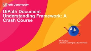 The document outlines the UiPath Document Understanding Framework, which automates the processing of unstructured documents into structured data for workflow integration. It emphasizes the importance of automating document handling to improve efficiency, accuracy, and overall user experience. The framework supports both attended and unattended implementations, ensuring ease of development and scalability.